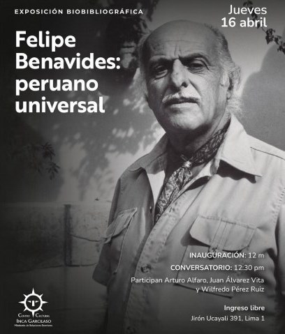 El jueves 16 de abril, a las 12 horas, se inaugurará la exposición biobibliográfica FELIPE BENAVIDES – Peruano Universal en el Centro Cultural Inca Garcilaso del Ministerio de Relaciones Exteriores que presenta la vasta obra de Felipe Benavides Barreda, diplomático y el renombrado ambientalista del siglo XX en el Perú, habiéndose consagrado a la defensa del patrimonio natural. Se describe su ambiciosa labor desde la década de 1950 y explica su participación en la creación del Parque de Las Leyendas, la Reserva Nacional Pampa Galeras, el Parque Nacional del Manu, la Reserva Nacional de Paracas, entre otras hazañas.