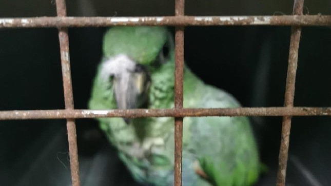 Loro “Aurora” fue hallado dentro de jaula con las plumas cortadas