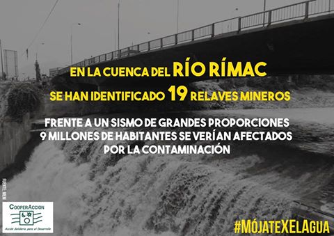 La ganadora del Premio Goldman 2016, la campesina Máxima Acuña de Chaupe, que puso en jaque a la tercera compañía de oro del mundo, Yanacocha, se ha convertido en un símbolo de la lucha por el medioambiente y el agua en un país donde la mitad de los conflictos mineros durante el periodo 2005-2013 fueron por este recurso hídrico. La escasez y mala calidad del agua por la minería son los principales reclamos que subyacen en conflictos como Conga, Espinar o Tía María que sacuden el país dejando centenares de heridos y decenas de muertos. Perú encabeza los ranking mundiales de exportación minera, a pesar de la caída del sector por el descenso del precio de los minerales en el mercado internacional. Se prevé que para los próximos 20 años, la demanda de agua por la minería se incrementaría en un 132%.
