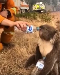 Rescatista da de beber a un koala que escapó de los incendios. The Telegraph