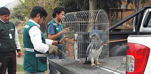El Ministerio de Agricultura y Riego (MINAGRI) a través del Servicio Nacional Forestal y de Fauna Silvestre (SERFOR) rescató un águila mora adulta (Geranoaetus melanoleucus) encontrada en el interior de un restaurante campestre del Valle del Tambo, en la provincia de Islay.