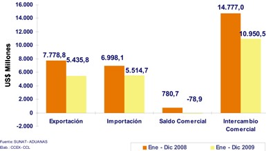 Según cifras del Centro de Comercio Exterior (CCEX) de la Cámara de Comercio de Lima, durante el año pasado las exportaciones peruanas hacia este grupo cayeron 30% comparado con lo registrado en el 2008, pasaron de US$ 7,778.8 millones en el 2008 a US$ 5,435.8 millones en 2009.