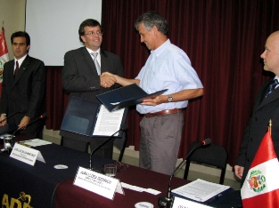 | Firma del convenio institucional entre ADEX y la Cámara de Comercio de Santa Cruz-Bolivia (CADEX) |
