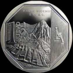 En el reverso, al centro se observa Machu Picchu. Al lado izquierdo de Machu Picchu, la marca de la Casa Nacional de Moneda sobre un diseño geométrico de líneas verticales. Al lado derecho de Machu Picchu, la denominación en número, el nombre de la unidad monetaria sobre unas líneas ondulantes y en la parte superior la frase MACHU PICCHU S. XV d.C.