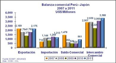 Cabe mencionar que, según cifras del Centro de Comercio Exterior (CCEX) de la CCL, durante el 2011 las exportaciones de productos no tradicionales sumaron US$ 134 millones representando solo 6.2% del total de envíos a Japón (US$ 2,174 millones).