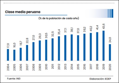 Según el IEDEP, estas características muestran las mayores vulnerabilidades de la clase media peruana, pues al no operar en la formalidad no dispone de protección social y se dificulta su acceso al financiamiento.
