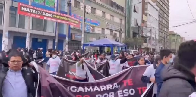 Comerciantes del emporio comercial de Gamarra realizaron una marcha de protesta por la avenida Abancay con dirección al Congreso de la República y Palacio de Gobierno en protesta por lo que llaman burla del gobierno, que los deja al borde de la quiebra.
