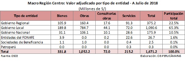 A S/ 1,671.2 millones ascendieron las compras del Estado en la Macro Región Centro a julio del presente año, según un informe del Centro de Investigación Empresarial (CIE) de PERUCÁMARAS.