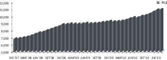 Al cierre del primer mes del 2011, el monto utilizado de las tarjetas de crédito de bancos y financieras totalizó S/. 11,059 millones, registrando un avance de S/. 71 millones (0.65%) y S/. 1,756 millones (18.87%) en relación con diciembre y enero del 2010, respectivamente, según informó la Asociación de Bancos del Perú.