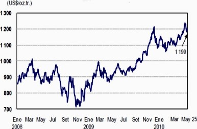 Del 18 al 25 de mayo, la cotización del oro cayó 1,5 por ciento y se ubicó en US$ 1 199,4 por onza troy, según indica el Banco Central de Reserva del Perú.