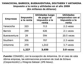 Sin duda, los dueños de empresas mineras como Yanacocha, Barrick, Buenaventura, Southern, Antamina y otras desean mantener durante la década 2011-2020 los privilegios tributarios que les han permitido alcanzar tan singular ratio utilidades/impuesto a la renta.