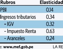 En el mismo MMM, el MEF analiza la elasticidad de los ingresos tributarios con respecto a los TI y encuentra que ésta es de 0,34, es decir que por cada 10% de crecimiento de los TI, los ingresos tributarios aumentan en 3,4%.