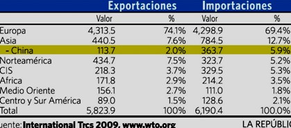 Africa (2.9%) es mucho más importante para la UE que Centro y Suramérica (solo somos el 1.5%). Ahora bien, esos US$ 89,000 millones que nos exportó la UE son el 22% del total de US$ 400,000 millones importados por Centro y Suramérica en el 2009. Estas son significativas para nosotros pero no para la UE.