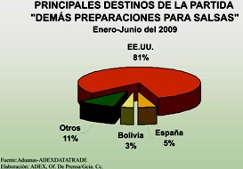 Estos productos registraron envíos en tres partidas, la principal fue “Demás preparaciones para salsas, y demás salsas preparadas”, que en el semestre en mención se vendieron por US$ 3 millones 379 mil, cifra que supera en 81% al US$ 1 millón 865 mil obtenidos en el mismo periodo del año anterior. Esa partida incluye productos como preparación para sopas instantánea con fideos, crema de arvejas, olluquito y chicha morada entre otras.