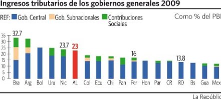 (1) Esta medición de la presión tributaria también incluye las contribuciones sociales (Essalud) y los impuestos municipales. Cuando estos impuestos no se toman en cuenta, la presión tributaria de Perú fue de 13.8% del PBI en el 2009.