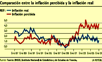 Desde la introducción del euro en el 2002, en la mayoría de países de la Unión Europea se observó un fenómeno curioso: la inflación percibida por la población –consignada en las encuestas de opinión– era muy superior a la reportada por la institución oficial. A la primera se le llamó "inflación percibida", a la segunda, "inflación real".