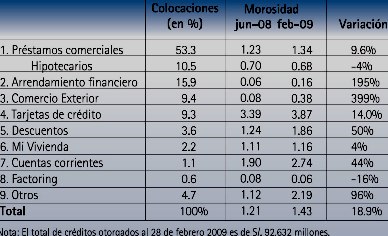 Pero hay que mirar más en detalle para ver bien la película completa. Del total de créditos otorgados por la banca múltiple (S/. 92,362 millones al 28 de febrero), el 53% corresponde a préstamos comerciales. Aquí los morosos llegan al 1.34% a febrero del 2009, lo que no indica problemas. Más aún, los créditos hipotecarios se comportan mejor, pues la morosidad desciende en 4% en el este periodo.