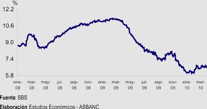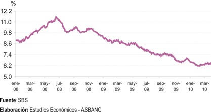 Las tasas de interés de los créditos comerciales (otorgados a corporaciones, grande y mediana empresas) se mantienen en niveles bajos, habiendo registrado leves cambios en marzo del 2010.