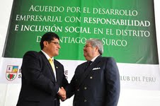 El presidente del Jockey Club del Perú, Luis Razzeto saludó la firma del Acuerdo por el Desarrollo con Responsabilidad e Inclusión Social con la Municipalidad de Santiago de Surco y precisó que la corporación edil surcana es una aliada estratégica para desarrollar acciones concretas en la generación de oportunidades de trabajo y crecimiento comercial en esta jurisdicción.