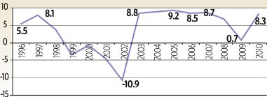 Debido a esas enormes ganancias ya obtenidas por los acreedores, la “quita” de la deuda llegó al 75%, lo que fue aceptado por los acreedores. Pero el argumento central, que también fue apoyado por Martin Wolf del Financial Times fue: sin ese descuento, Argentina no podrá salir de la recesión pues tendrá que destinar demasiados recursos al pago de la deuda. En otras palabras, el crecimiento viene primero. El otro cambio central en la orientación de la política económica se centró en el fortalecimiento del mercado interno, impulsando las tecnologías de la información y del conocimiento. Y tuvo éxito: del 2003 al 2010 el PBI creció 78% (ver gráfico) y Argentina ha entrado a la liga de los grandes pues forma parte del G-20. Dice Mario Wainfeld:
