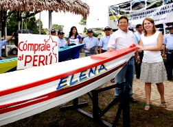 La Ministra de la Producción, Elena Conterno Martinelli, puso en marcha la campaña “Cómprale al Perú” en la selva, en la Región Ucayali, con el propósito de promover el consumo de los productos que se elaboran en la amazonía del país, dinamizar la economía local y generar más puestos de trabajo.