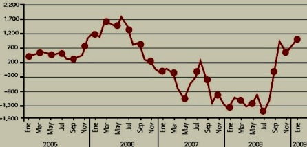 El deterioro se aprecia en la balanza comercial pues, después de muchos años de superávit, se volvió negativa: -0.6%% del PBI en el IV Trimestre del 2008. La preocupación es mayor por el lado de la cuenta corriente, que también se ha vuelto negativa después de muchos años: -3.3% del PBI. Lo mismo está sucediendo con la inversión directa: en el IV T del 2008 hubo una desinversión de US$ 1,113 millones. Este frenazo de las inversiones tampoco se veía desde hace varios años.