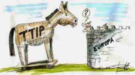 En la letra pequeña de dicho Tratado aparece la introducción de la claúsulaISDS de resolución de conflictos entre Inversor y Estado en los acuerdos, cláusula que limita seriamente la capacidad de los Estados para luchar contra la crisis financiera y económica (las multinacionales estadounidenses podrían utilizar el ISDS para desafiar las regulaciones de la UE destinadas a proteger al público y al medio ambiente y demandar a los gobiernos europeos y así maximizar sus beneficios) así como del llamado Consejo de Cooperación Regulatoria, lo que supondría según Sol Sánchez, coordinadora general de ATTAC España que “estos tratados estarían para siempre en crecimiento y no sólo se interpondrían con las leyes futuras sino que además podrían reformar las ya existentes en los Estados firmantes, en suma, un verdadero gobierno directo de las Corporaciones” . La Eurocámara no puede negociar ni incorporar enmiendas al tratado pero habría elaborado su propia opinión, reflejada en el Informe Lange que habría sido aprobado por liberales,socialistas y populares tras pactar una enmienda que dice que el arbitraje incluido en el TTIP será un sistema “no discriminatorio” con las empresas locales o extranjeras del que formen parte “jueces independientes” y que “no anteponga los intereses privados a los públicos”. Asimismo, habría introducido otra resolución para mantener los niveles de protección existentes para los trabajadores europeos basada en una resolución que obliga a Estados Unidos a respetar los estándares laborales de la Organización Internacional del Trabajo (OIT), resolución que sólo sería papel mojado pues en breve la Eurocámara podría aprobar el TISA (el llamado TTIP de servicios) que apuesta por abrir los mercados nacionales europeos a países como Taiwan, Hong Kong , Corea del Sur y posiblemente China que no han suscrito los 8 Convenios fundamentales con la OIT ( entre ellos los relativos a libertad sindical, defensa del trabajo digno o convenios colectivos), lo que podría tener como efecto colateral el finiquito de las normas laborales reconocidas individualmente por los 28 países de la UE. Francia y Alemania ya expresaron serias reservas a la Comisión ante algunos precedentes en los que las multinacionales han impuesto sus criterios frente a los legisladores gracias a estos sistemas de resolución de conflicto inversor-Estado (en inglés, ISDS) y dado que el euro-Parlamento tiene potestad para tumbar todo el TTIP una vez hayan concluido las negociaciones, no sería descartable en el 2017 el rechazo de la mayoría europarlamentaria a la aprobación de dicho Tratado debido a una tardía reafirmación de la soberanía europeísta por parte franco-alemana coadyuvada por los efectos colaterales de la imposición de sanciones a Rusia, dibujándose un escenario a cinco años en el que se pasaría de las guerras comerciales al proteccionismo económico bajo el eufemismo de Fomento del Consumo de Productos nacionales con la subsiguiente contracción del comercio mundial, posterior finiquito a la globalización económica y ulterior regreso a los compartimentos estancos en la economía mundial.
