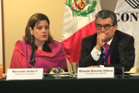 La ministra de la Producción, Mercedes Aráoz, se reunió esta mañana con el presidente de la Confiep, Ricardo Briceño Villena, presidentes de Cámaras de Comercio y de Organizaciones de Pequeñas Empresas, además estuvo acompañada por el vice ministro de Mype e Industria, José Luis Chicoma.