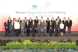 Asimismo, reafirmaron su compromiso con el Sistema Multilateral del Comercio y la finalización exitosa de la actual Ronda de Negociaciones en el marco de la Organización Mundial del Comercio (OMC). Al respecto, el Director General de la OMC, Pascal Lamy, informó a los Ministros sobre la situación actual de las negociaciones y exhortó a los mismos a plasmar el apoyo político existente en avances a nivel técnico en Ginebra.