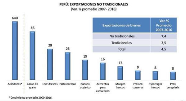 Las exportaciones no tradicionales han crecido a un ritmo promedio de 7,4 % en los últimos diez años (BCR) por iniciativa privada sin ser estrategia nacional.