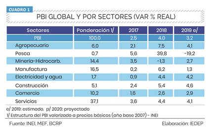 El Instituto de Economía y Desarrollo Empresarial (Iedep) de la Cámara de Comercio de Lima informó que la economía peruana crecería 3,2% al cierre del 2019, lo que significa una reducción de 0,5 puntos porcentuales a lo estimado a comienzos del año, cuando la proyección era de 3,7%.