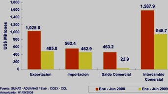 De acuerdo a los resultados comerciales observados en el primer semestre del año, Japón se mantiene como el quinto destino de nuestras exportaciones, habiendo alcanzado la suma de US$ 485,81 millones (4,3% del total exportado), 52,6% menos que lo registrado entre enero y junio de 2008. Este ha sido el mayor descenso registrado entre los 5 primeros destinos comerciales de nuestras exportaciones.