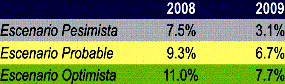 Mientras que de darse un escenario pesimista para el 2009, el Instituto de Economía y Desarrollo Empresarial de la CCL se proyecta que la economía peruana crezca solamente 3.1%.