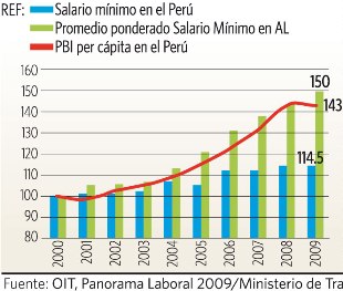 De otro lado, estadísticas recientes del Ministerio de Trabajo, dicen que el 2009 la Población Económicamente Activa (PEA) de Lima ascendió a 4.39 millones de personas. De este total, el 3% no tiene ingresos y el 21.7% gana menos de S/. 500/mes (menos que el salario mínimo). 35% tiene ingresos que van de los 500 a 1,000 soles mensuales y un 18.5% adicional gana entre 1,000 y 1,499 soles mensuales.