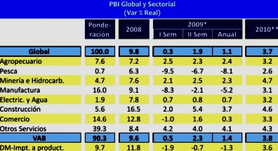 Se estima que la tendencia decreciente del sector se revertiría en lo que resta del año alcanzando en el cuarto trimestre una tasa alrededor de 2,5%. Aunque para el 2010 se prevé que la producción agropecuaria alcance un aumento de 3,2%.