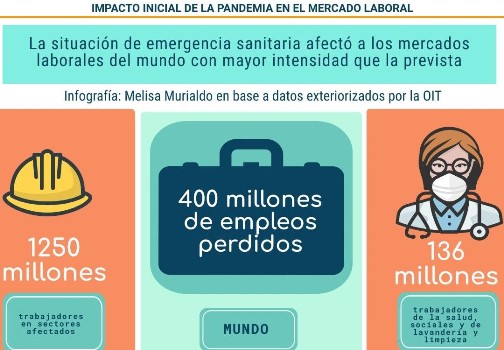 A nivel mundial, la pérdida de empleos durante el segundo trimestre del 2020 fue mucho mayor a lo que se había previsto inicialmente; ya que la Organización Internacional del Trabajo (OIT) había previsto una disminución de 305 millones para el mismo y la pérdida contabilizada arrojó una cifra de 400 millones de empleos perdidos en el mismo momento en que el coronavirus también superaba picos de contagio continuamente.