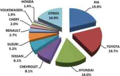 Los compradores prefirieron en primer lugar a la marca Kia que representó el 19,9% del total de unidades. Le siguieron Toyota (19,7%), Hyundai (16%), Chevrolet (8,1%) y Nissan (6,1%).