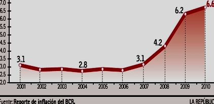 La inversión privada tendrá un aumento del 8% en el 2009 y el 2010. Pero, ojo, aquí hay una notable disminución frente a las tasas del 20.1%, 23.4% y 25.6% del 2006, 2007 y 2008. Dice el BCR que la crisis internacional “va a reducir el impulso en la inversión en los sectores de exportación”.