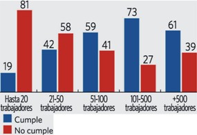 | Cumplimiento del salario mínimo según tamaño de empresa, costa rural ENAHO 2008 |