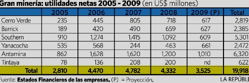 Pero ¿por qué no recaudar una cantidad adicional de impuestos directos a las empresas mineras y petroleras que tienen ganancias extraordinarias debido a los excepcionales altos precios de estos recursos naturales, que son de la Nación? Del 2005 al I Semestre del 2010, por ejemplo, las utilidades netas de las cinco primeras empresas mineras alcanzan un total de US$ 21,591 millones. Una parte importante de esas utilidades debieron haber sido gravadas con un impuesto a las sobreganancias.