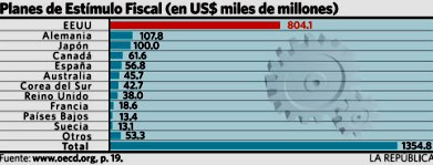 Un reciente informe de la OCDE (1) dice que los PEF de los 13 países más grandes sumaron US$ 1.3 billones (trillones, en inglés), con el primer lugar para EE. UU. con US$ 804,000 millones. Dice que su tamaño acumulado, para el periodo 2008-2010, es de 3.5% del PBI total del 2008.
