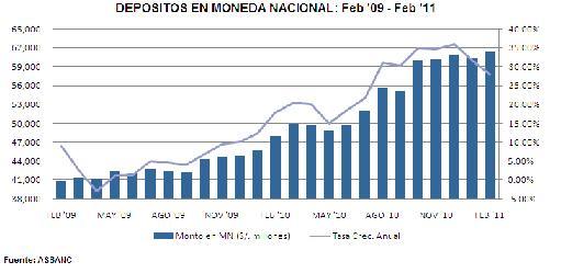 Al cierre de febrero 2011, los Depósitos Totales de la banca privada, expresados en Nuevos Soles, ascendieron a S/. 115,694 millones.
