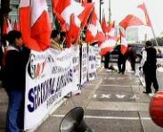 Que ridículos estos cholos. Protestan con banderas peruanas, como si se tratase de un conflicto en los países. Que mente más retrógrada y básica.