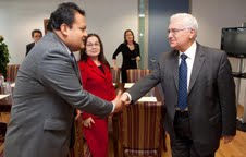 El ministro de la Producción, José Urquizo, sostuvo hoy una reunión con el Comisario de Sanidad y Consumidores (SANCO) de la Unión Europea, John Dalli, en la ciudad de Bruselas (Bélgica), con el fin de avanzar en el proceso de levantamiento de las restricciones a la exportación de moluscos bivalvos desde el Perú hacia la Unión Europea.