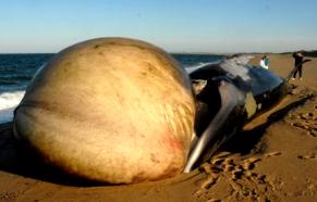 Una ballena joven fue varada muerta en la playa de Herring Cove, Provincetown, Massachusetts, la cual presentaba una gigantesca hinchazón en la lengua.