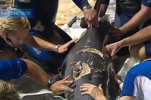 Lo que sorprende mucho a los expertos es el hecho de que, siendo delfines libres, Nari confíe en los humanos, que lo subieron para ser tratado por los veterinarios. El delfín herido permaneció muy calmado en la complicada operación para sacarlo del mar, como si confiara totalmente su salvación a los humanos.