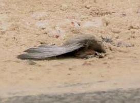 Un vocero de Fish and Wildlife dijo que algo súbito y violento las mató. Al parecer, las aves estaban comiendo frutos, cuando fueron lanzadas a la vía de un camión.