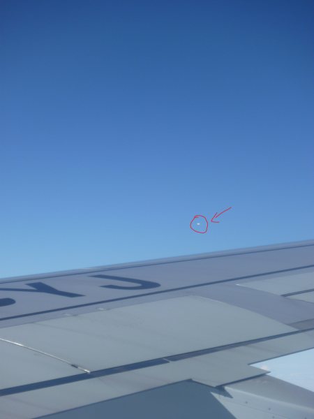 Alrededor de las tres de la tarde, el objeto fue avistado por un pasajero por el lado de una de las alas.