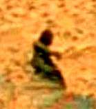 Una extraña figura de forma humanoide en el planeta Marte, captada por el artefacto espacial Spirit, ha sido publicada por la NASA. La figura de color café oscuro fue captada al borde de un cráter denominado Gusev y tiene el aspecto de un humano reclinado que parece descender por una suave inclinación de una colina, la misma que pudo ser visible debido al contraste del su color con el del suelo marciano, pardo claro.
