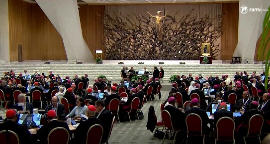 El sínodo 2024, al fondo se ve la escultura La Resurrezione, del masón Pericle Fazzini